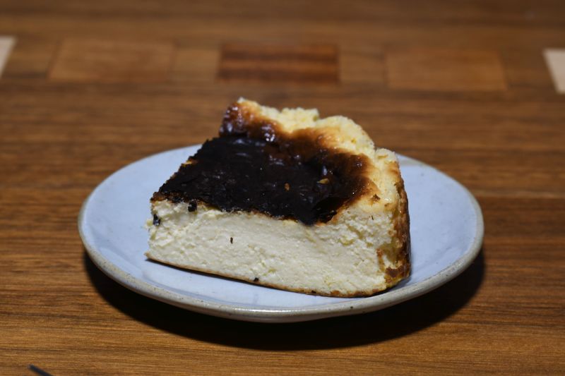 この間食べたバスクチーズケーキも載せとこう。型の直径が大きかったから平べったいし、上が焦げ過ぎ。