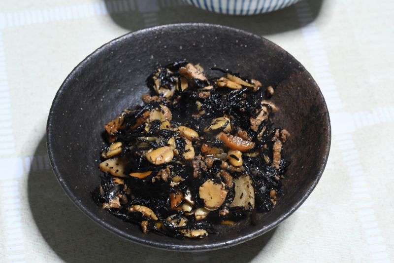 この辺では食べる習慣のない打ち豆をいただいたのでひじきと五目煮にした。おいしい。